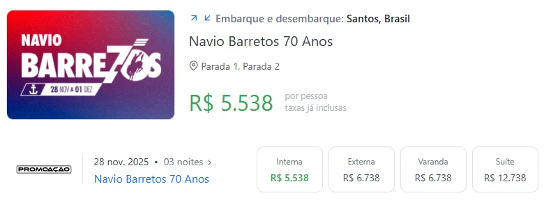 Navio Barretos 70 Anos (28 de novembro a 01 de dezembro de 2025)