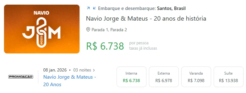Navio Jorge & Mateus – 20 anos de história (08 a 11 de janeiro de 2026)
