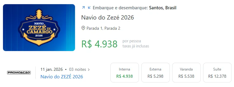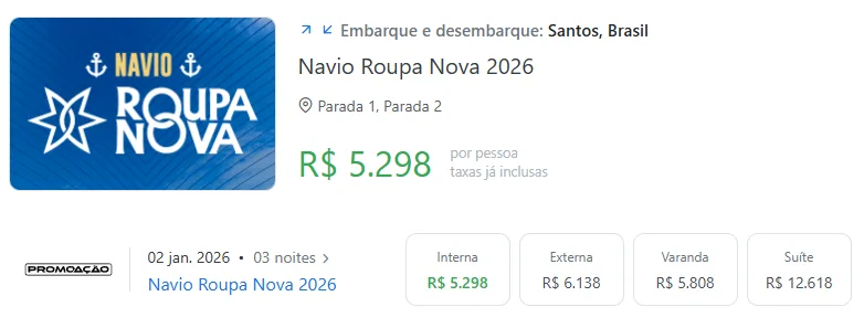 Navio Roupa Nova 2026 (02 a 05 de janeiro de 2026)