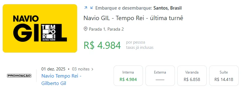 Navio GIL – Tempo Rei – última turnê (01 a 04 de dezembro de 2025)