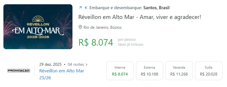 Réveillon em Alto Mar – Amar, viver e agradecer! (29 de dez de 2025 a 02 de jan de 2026)