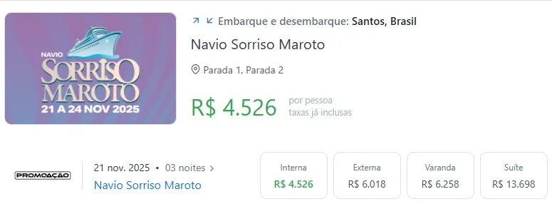 Navio Sorriso Maroto (21 a 24 de novembro de 2025)