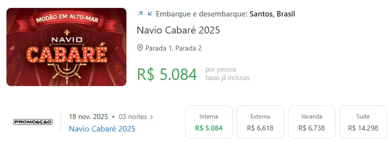 Navio Cabaré 2025 (18 a 21 de novembro de 2025)