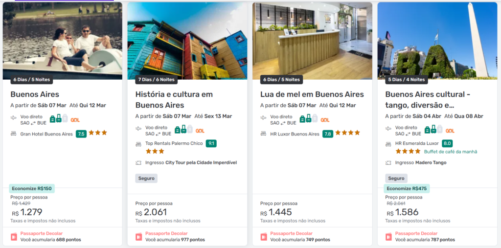 Ao analisar o site da Decolar para este período, notamos uma grande variedade de opções que combinam aéreo e hotel. O destaque vai para a flexibilidade de escolha, desde hotéis boutique em Palermo até opções mais econômicas no Centro e na Recoleta.