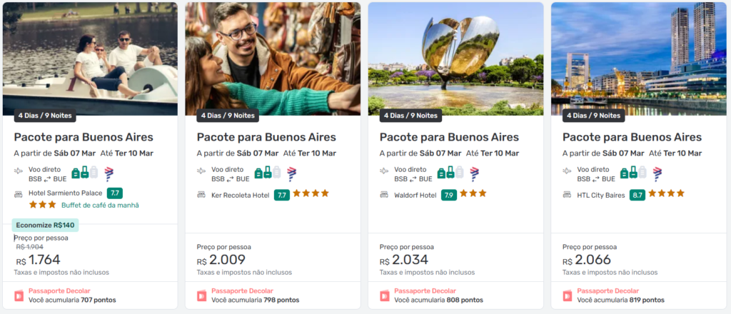 Buenos Aires continua sendo um dos destinos internacionais mais acessíveis e charmosos para os brasileiros. Nossa equipe de monitoramento identificou uma excelente disponibilidade de pacotes de viagem para o mês de março, com tarifas competitivas saindo tanto de São Paulo quanto de Brasília.